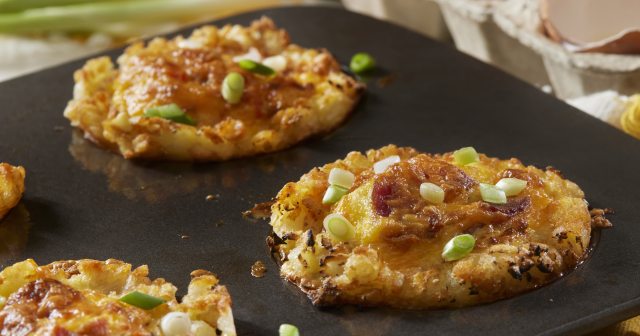 Spoon the batter into the prepared muffin tan. Sprinkle the remaining cheese on top.