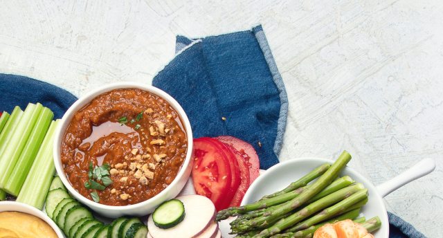 Remove from oven and serve with veggies and tortilla chips. Enjoy!