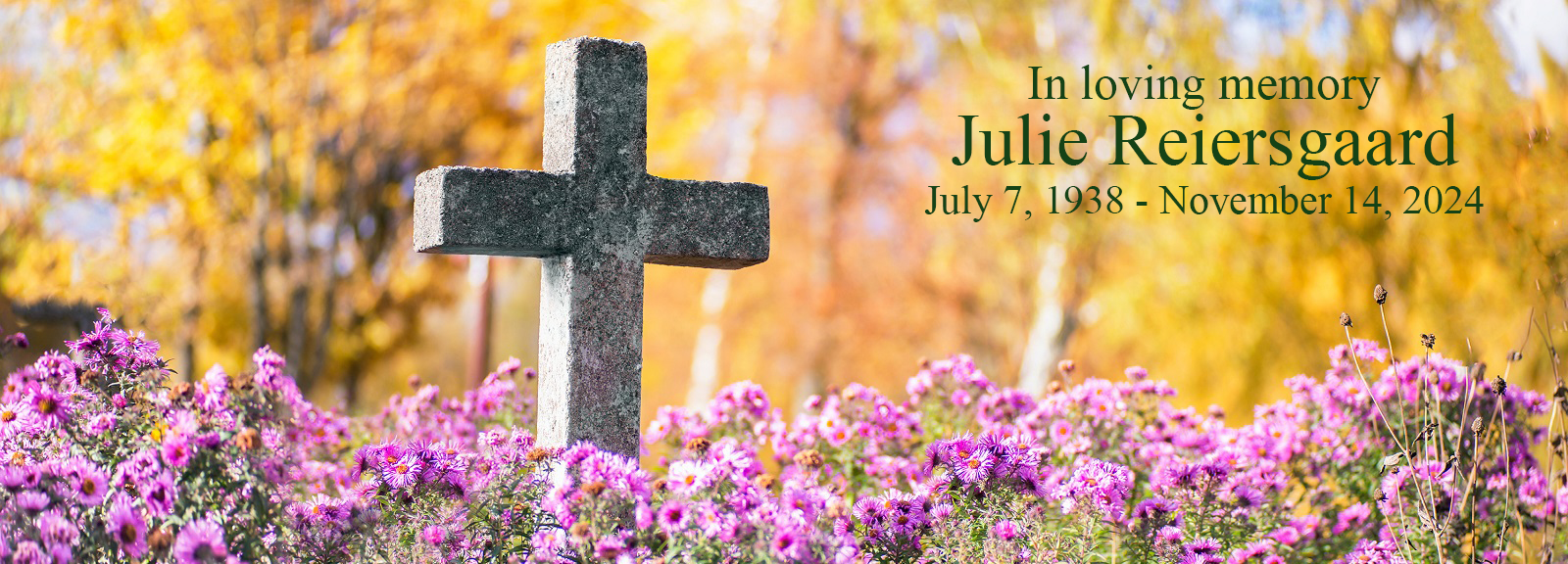 In the early hours of November 14th, Julie Reiersgaard passed away peacefully at her home. Her devoted husband of 60 years, Bill, never left her side. Her son John and longtime caregiver, Estera were present as well.